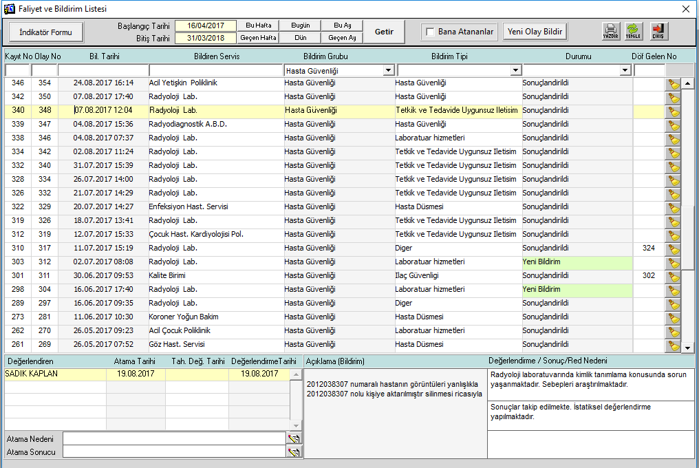 3. DÜZELTICI/ÖNLEYICI FAALIYETLERIN ETKINLIĞINI VE KONTROLÜNÜ SAĞLAMAK AMACI ILE SISTEM INTRANET ORTAMINDA KURGULANDI. OLUŞTURULAN PROGRAM SAYESINDE BILDIRIMLERIN NE ZAMAN VE KIM TARAFINDAN YAPILDIĞI BUNUN YANI SIRA NASIL BIR ÇÖZÜM YOLU BULUNDUĞU KAYIT ALTINA ALINMASI VE KALITE YÖNETIM BIRIMINDE MUHAFAZA EDILMESINE YÖNELIK DÜZENLEMELER YAPILDI. DÖF’LERIN KAPATILMA ORANLARI 3 AYLIK PERIYOTLARDA ANALIZ EDILMEKTEDIR. KALITE YÖNETIM BIRIMINE 2017 YILI IÇERISINDE 132 BILDIRIM YAPILMIŞ 53 TANESI ÇÖZÜME KAVUŞTURULARAK KALICI DÜZENLEMELER YAPILMIŞTIR.