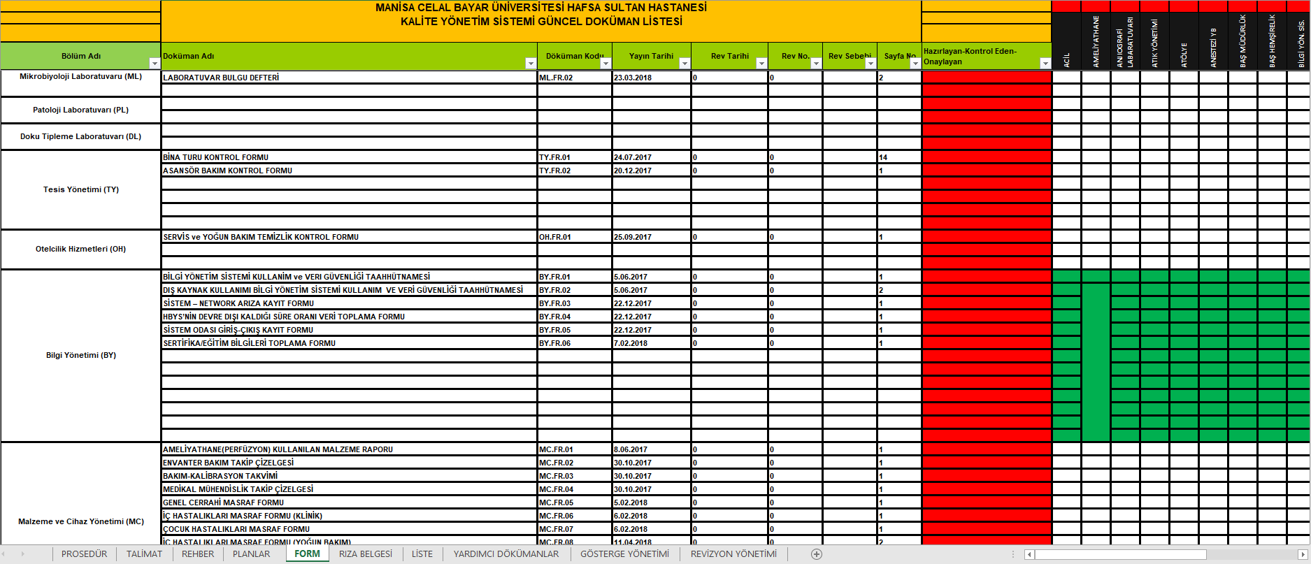 1. DOKÜMAN YÖNETIM SISTEMI, SAĞLIK BAKANLIĞININ YAYINLAMIŞ OLDUĞU DOKÜMAN YÖNETIM REHBERINE UYGUN OLACAK ŞEKILDE YENIDEN DÜZENLENMIŞ VE ‘’DOKÜMAN TAKIP PROGRAMI’’ KURGULANARAK, 595 DOKÜMAN GÜNCELLENMIŞ VEYA YENIDEN HAZIRLANMIŞTIR. HASTANE DOKÜMANLARININ %20’SI TAMAMLANARAK KAYIT ALTINA ALINMIŞTIR. 2018 YILINDA DOKÜMAN YÖNETIM ÇALIŞMALARI DEVAM ETMEKTEDIR.